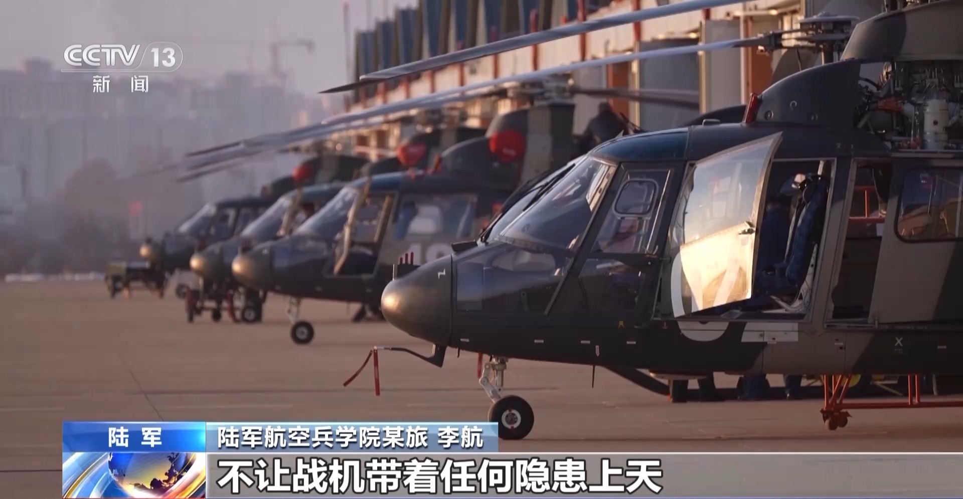 陆军航空兵学院某旅 李航:针对冬季严寒条件下直升机维护特点,对直升机发动机、滑油系统、燃油系统、橡胶制品等关键部位进行重点检查,不留任何死角隐患,以“零差错、零隐患、零故障”为目标,不让战机带着任何隐患上天,确保新年度开飞优质、安全、顺利。