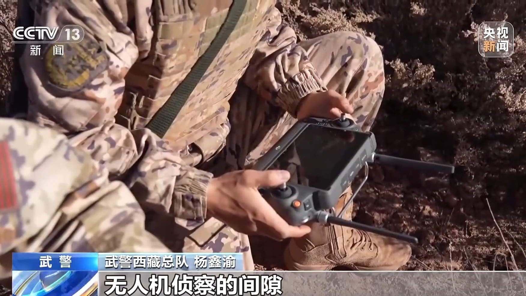 武警西藏总队 杨鑫渝:无人装备虽灵活,但也存在暴露风险,我们就要做到“装备探路、人员补盲”。无人机侦察的间隙,由观察员快速补充侦察,既避免装备长时间暴露,又让侦察链不中断。以前单靠人力侦察,不仅覆盖范围小、速度慢,还容易暴露,现在人机配合,侦察链的隐蔽性和效率都翻倍。