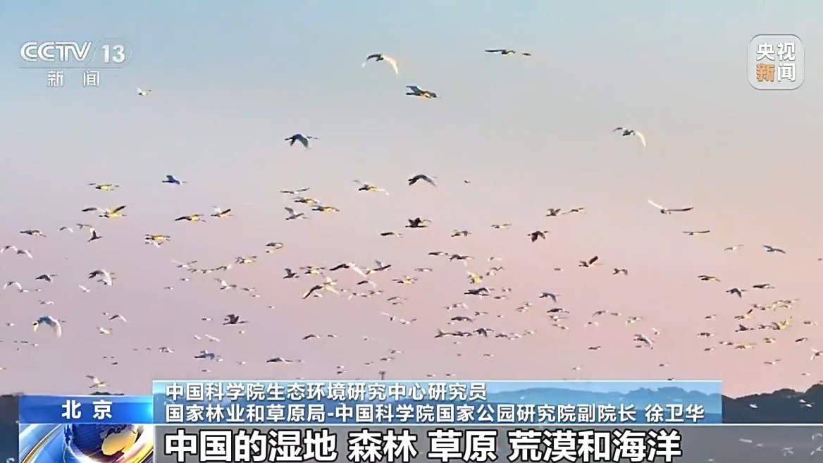 国家林草局湿地管理司副司长 杨锋伟:这些灵动的生命,是湿地生态健康最直观的风向标。我国已形成独具中国特色的湿地保护发展新格局,保护好万千生灵赖以生存的家园和生态安全的战略空间。