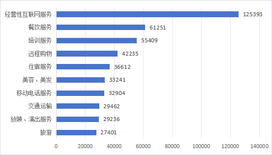 在具体服务投诉中,投诉量居前五位的分别为(如图5所示):经营性互联网服务、餐饮服务、培训服务、远程购物、住宿服务。与2024年相比(如表5所示),交通运输、远程购物、培训服务投诉上升,移动电话服务、住宿服务投诉下降。