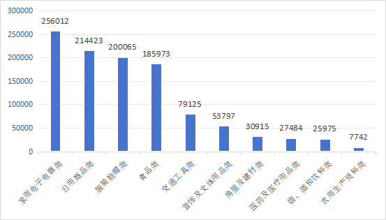 在所有投诉中,商品类投诉为1081511件,占总投诉量的53.63%,与2024年相比,比重上升4.4个百分点;服务类投诉为845710件,占总投诉量的41.94%,比重下降0.27个百分点;其他类投诉为89227件,占总投诉数量的4.42%。