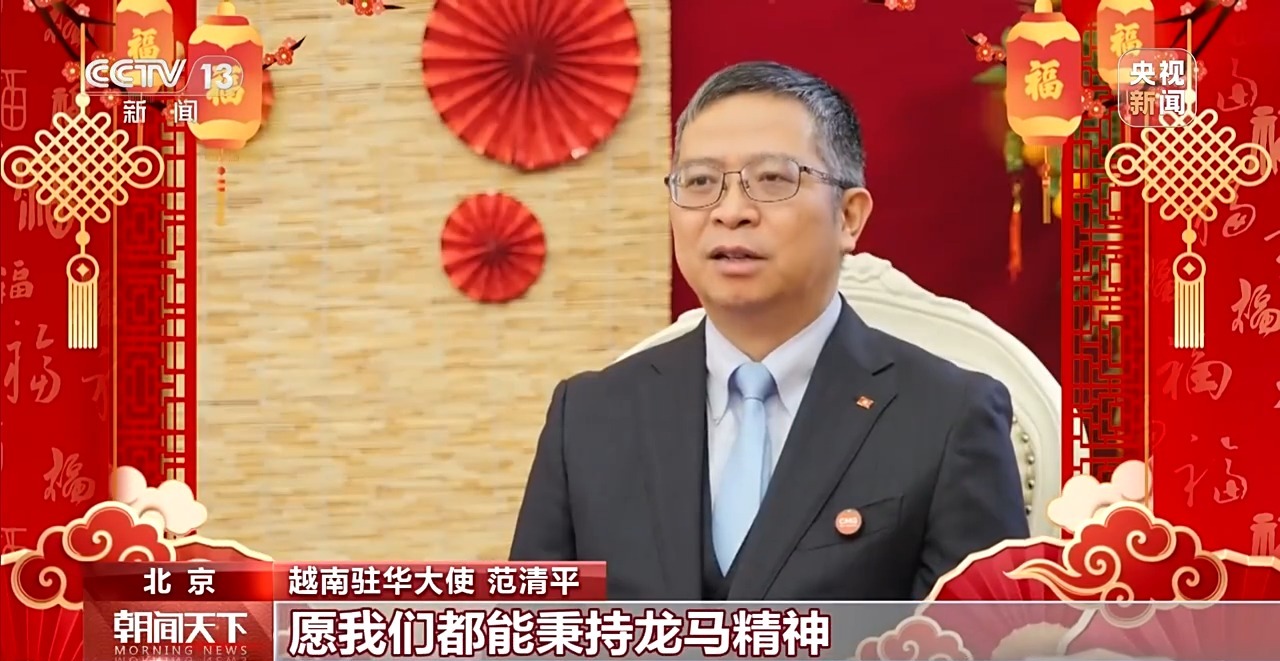 越南驻华大使 范清平:值此丙午马年春节来临之际,我谨向广大中国朋友致以最美好的新年祝福!祝愿大家新年快乐,身体健康,万事如意!愿我们都能秉持龙马精神,做到一马当先,祝大家新年马到成功!