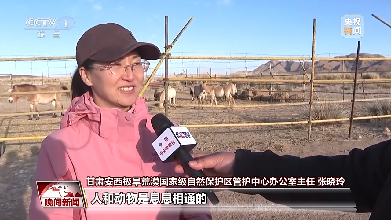 甘肃安西极旱荒漠国家级自然保护区管护中心办公室主任 张晓玲:人和动物是息息相通的。把它送到大自然去,让大自然更加绚丽多彩。