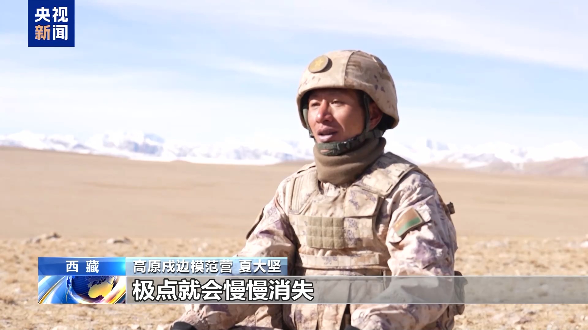 高原戍边模范营 夏大坚:给我印象最深的是单位给我们的任务是到达山口,在一个地方潜伏观察,我们把身上所有的保暖措施全部做到位了。到了山口的时候,我们根本没法实时观察任务。因为风太大了,一站起来就会被吹偏方向,后面我们就趴到一个地方,把石头捡到大衣兜里面压起,这样身体重量就增加了,所以风吹不动的。