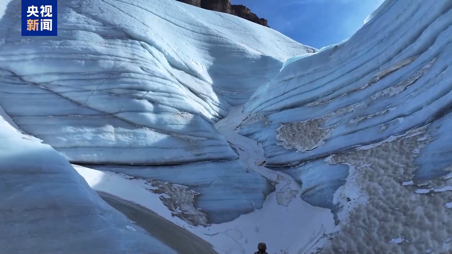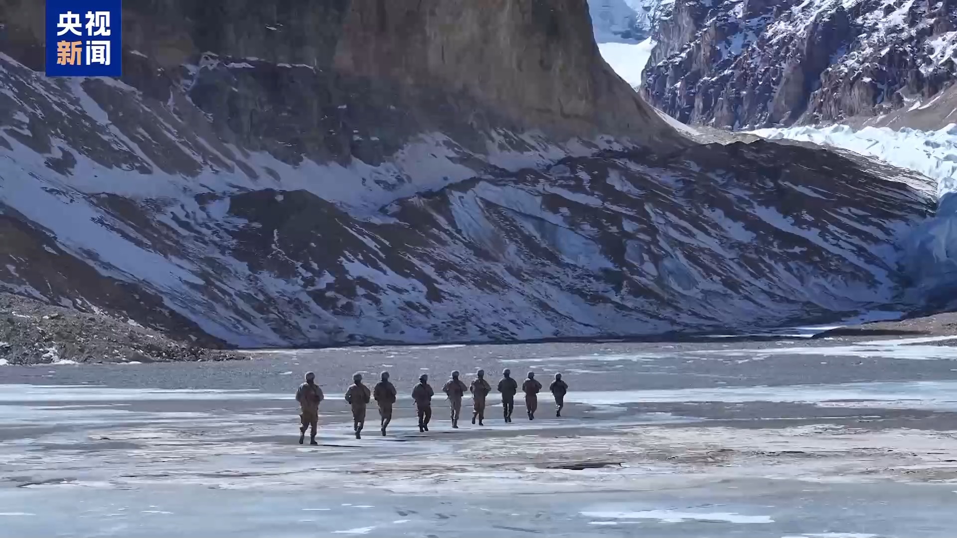 官兵们在湿滑的冰面上小心行走,脚下是汹涌的暗河,稍有不慎便会滑倒,夏大坚不断提醒官兵注意冰面断裂、不慎坠湖的危险。11年来,夏大坚执行海拔5300多米的重要山口观察任务数百次,十多次与死神擦肩而过。