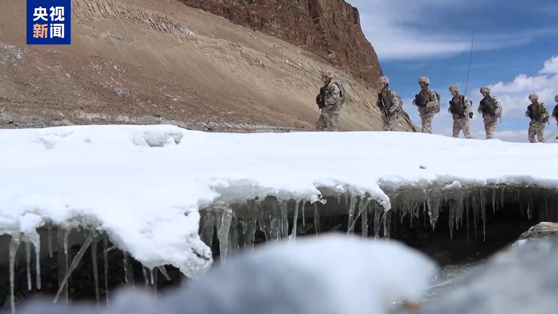 高原戍边模范营 赵子茗:像这条巡逻路线,我已经很熟悉了,这边山脊落石上面全是碎冰,一点都不好走。