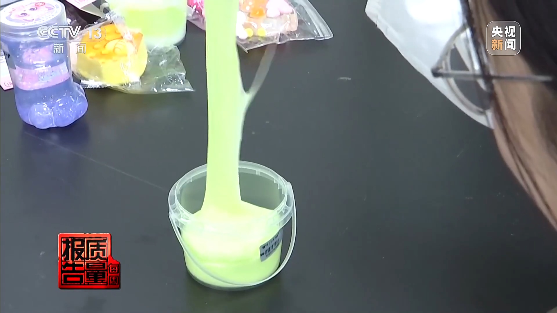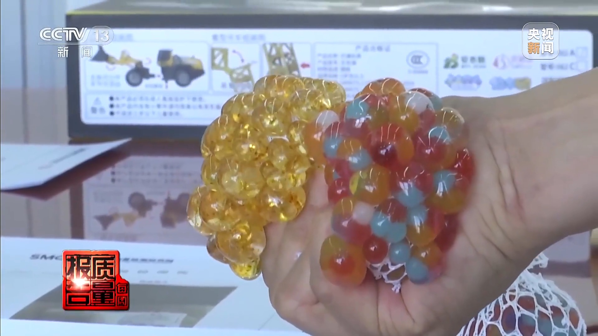 上海市质检院工程师 张慧:捏捏乐玩具TVOC释放量是不符合新国标要求的,超限量值3倍。还有一款起泡胶玩具,甲醛释放量不符合要求,超限量值4倍。
