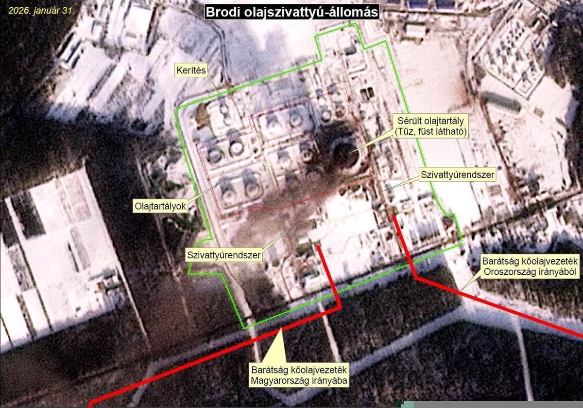 △匈总理欧尔班在社交媒体公布的位于乌克兰的布罗迪(Brodi)泵站1月31日卫星图