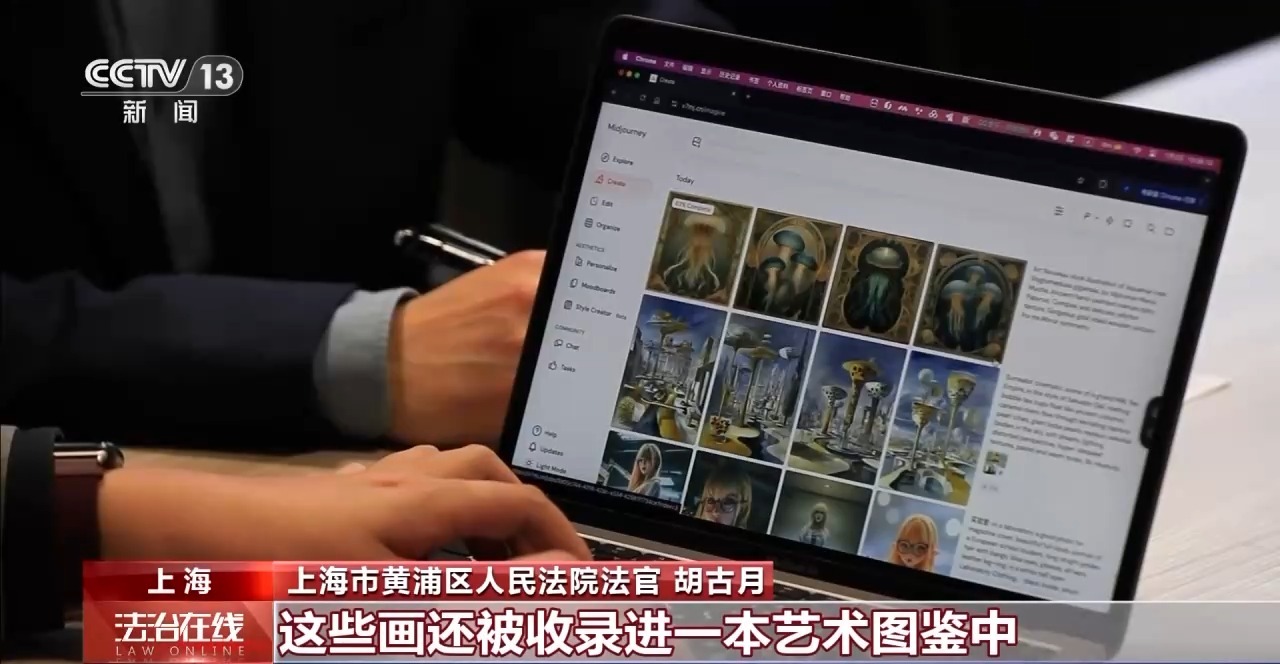 上海市黄浦区人民法院法官 胡古月:该公司发现某用户发布的画作与己方公司风格很像,这些画还被收录进一本艺术图鉴中,作者署名为朱某和盛某。经查实二人所用画作的提示词与己方公司完全一致,他们便诉到法院要求停止侵权并赔偿。