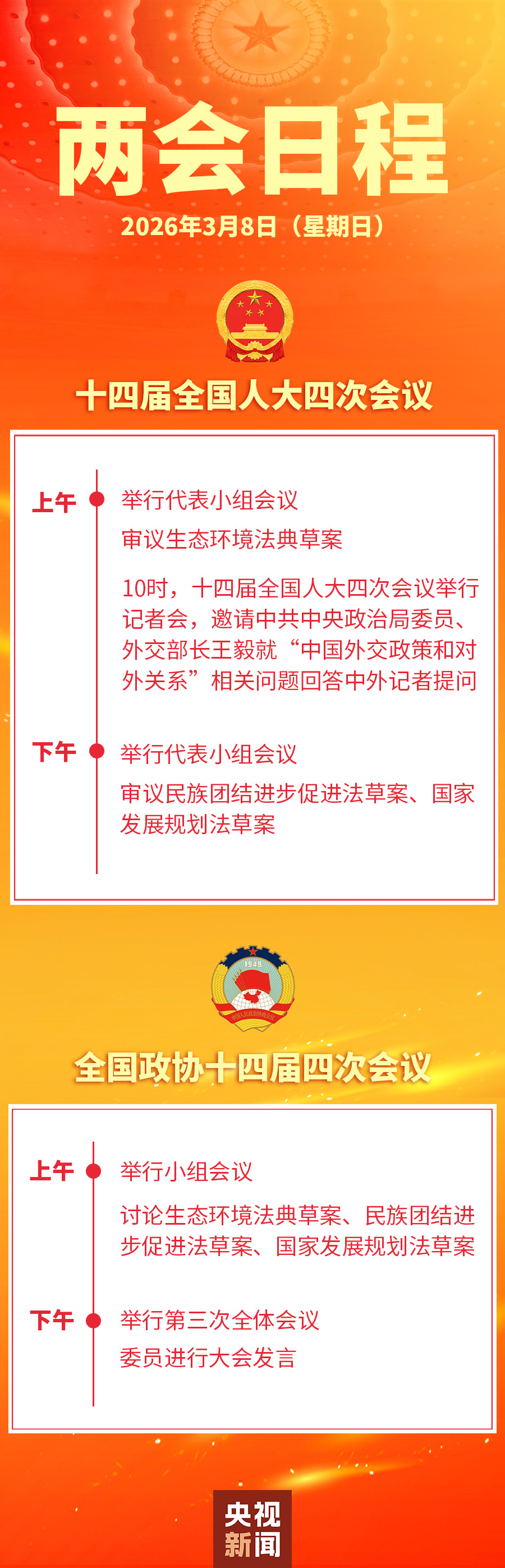 两会日程预告丨3月8日:人代会审议生态环境法典草案等 政协举行第三次全体会议