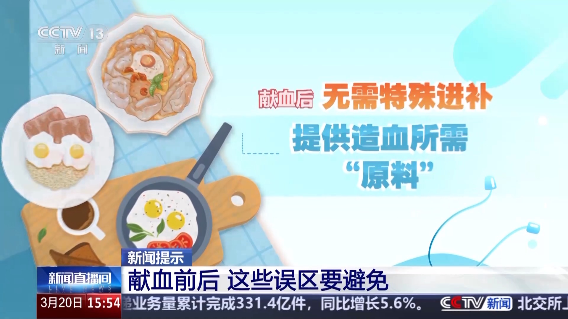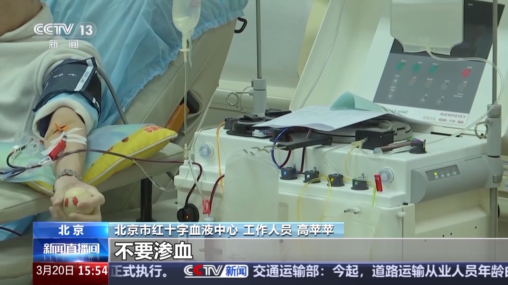 北京市红十字血液中心工作人员 高苹苹:献血的针眼要好好按压,至少要24小时之内不要沾水,然后献血的胳膊两个小时也不要提重物,都是为了保证穿刺点不渗血,献血后24小时不要做剧烈的体育运动,还有就像高空作业,这些都要避免。