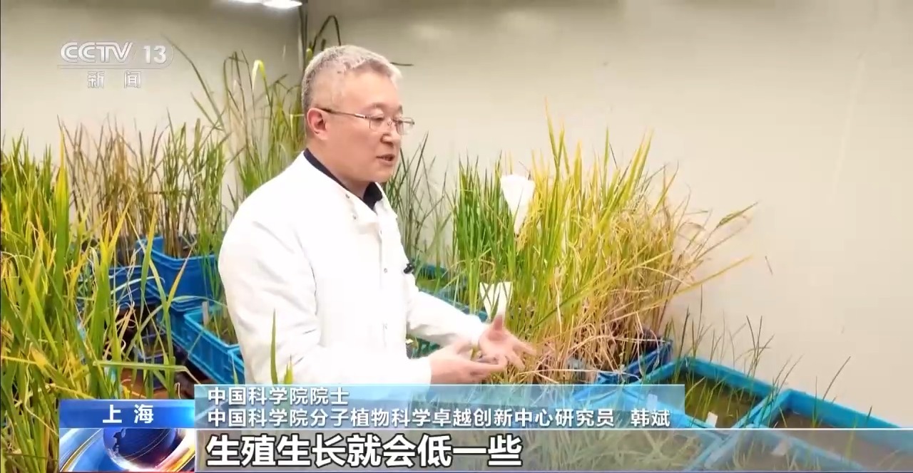 中国科学院院士 中国科学院分子植物科学卓越创新中心研究员 韩斌:现在栽培稻最大特点,稻穗很多,无效的分蘖少,每个分支都长个穗。这个里面有的分枝长穗,有的分枝不长穗,所以营养生长和生殖生长是一对矛盾,营养生长多了,生殖生长就会低一些,如何把它平衡好,我们还需要整合其他基因、上下游相关的基因,鉴定清楚,精准调控。
