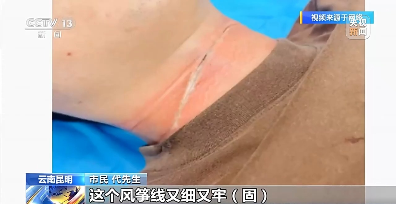 代先生告诉记者,常见的专业风筝线颜色偏浅,距离稍远就很难被肉眼发现,隐蔽性很高,而且风筝线绷紧以后非常锋利,他们平时都要挑没人、空旷的地方放风筝,就怕伤到人。