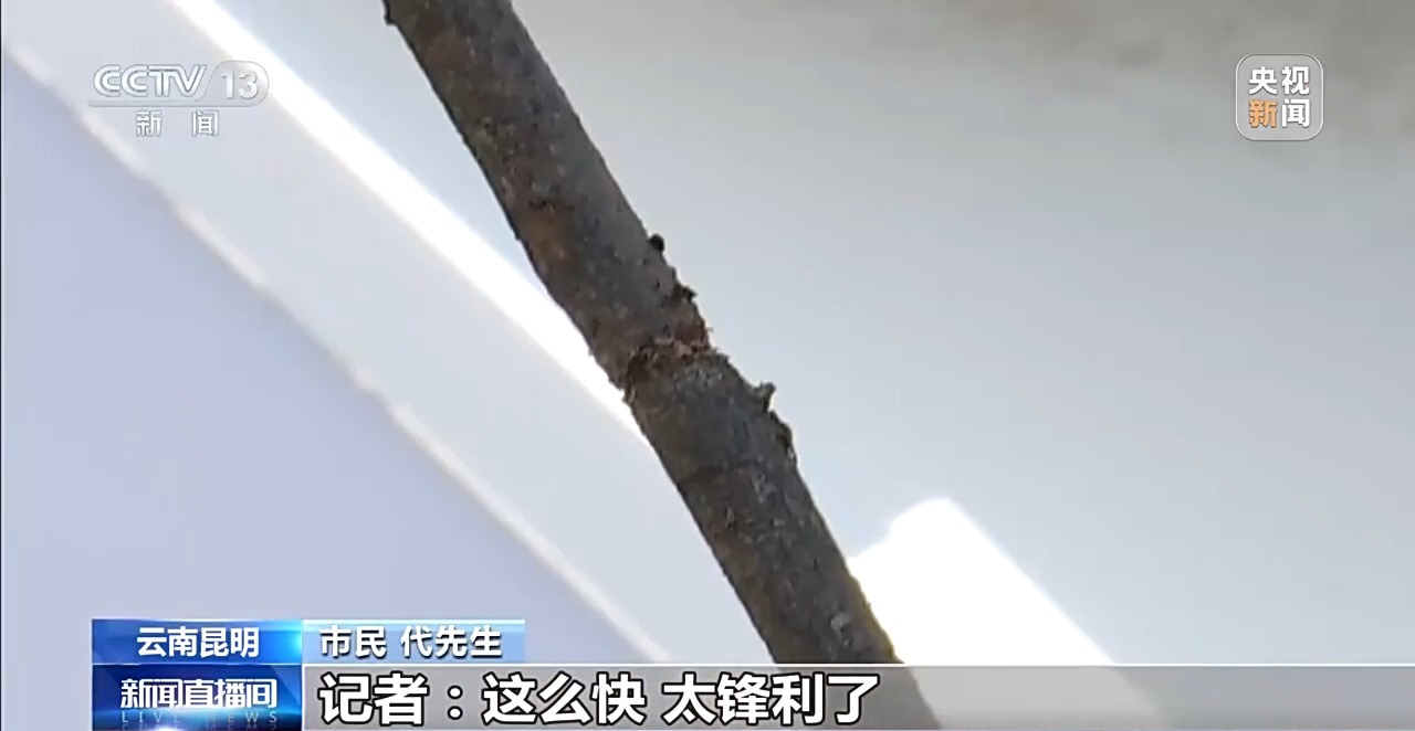 为了直观展示风筝线的杀伤力,代先生用一根木棍做了演示。