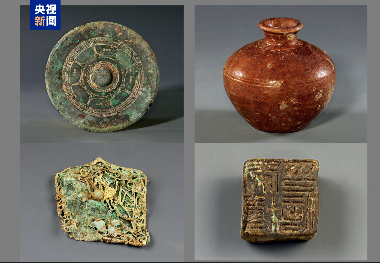 这6座墓葬出土遗物有陶扁壶、罐、碗、铜镜、金珰、银钗、手环、木印章、铜钱等。