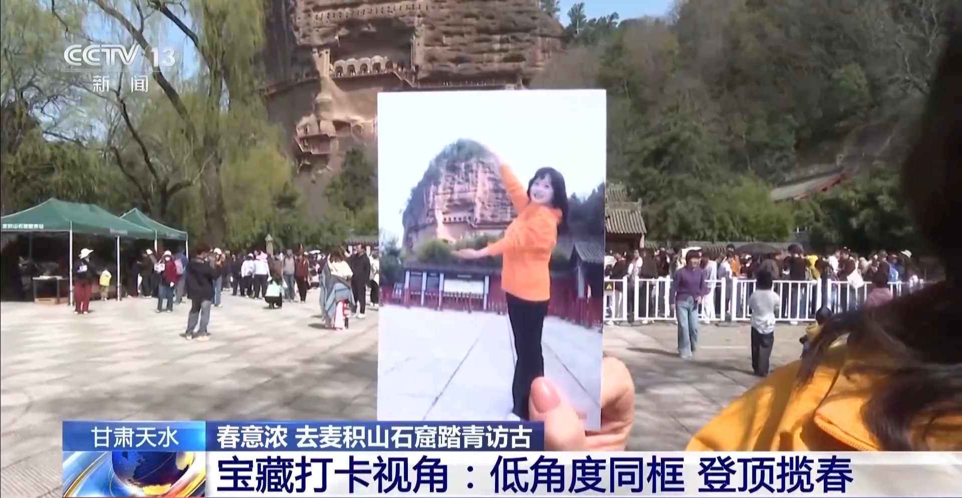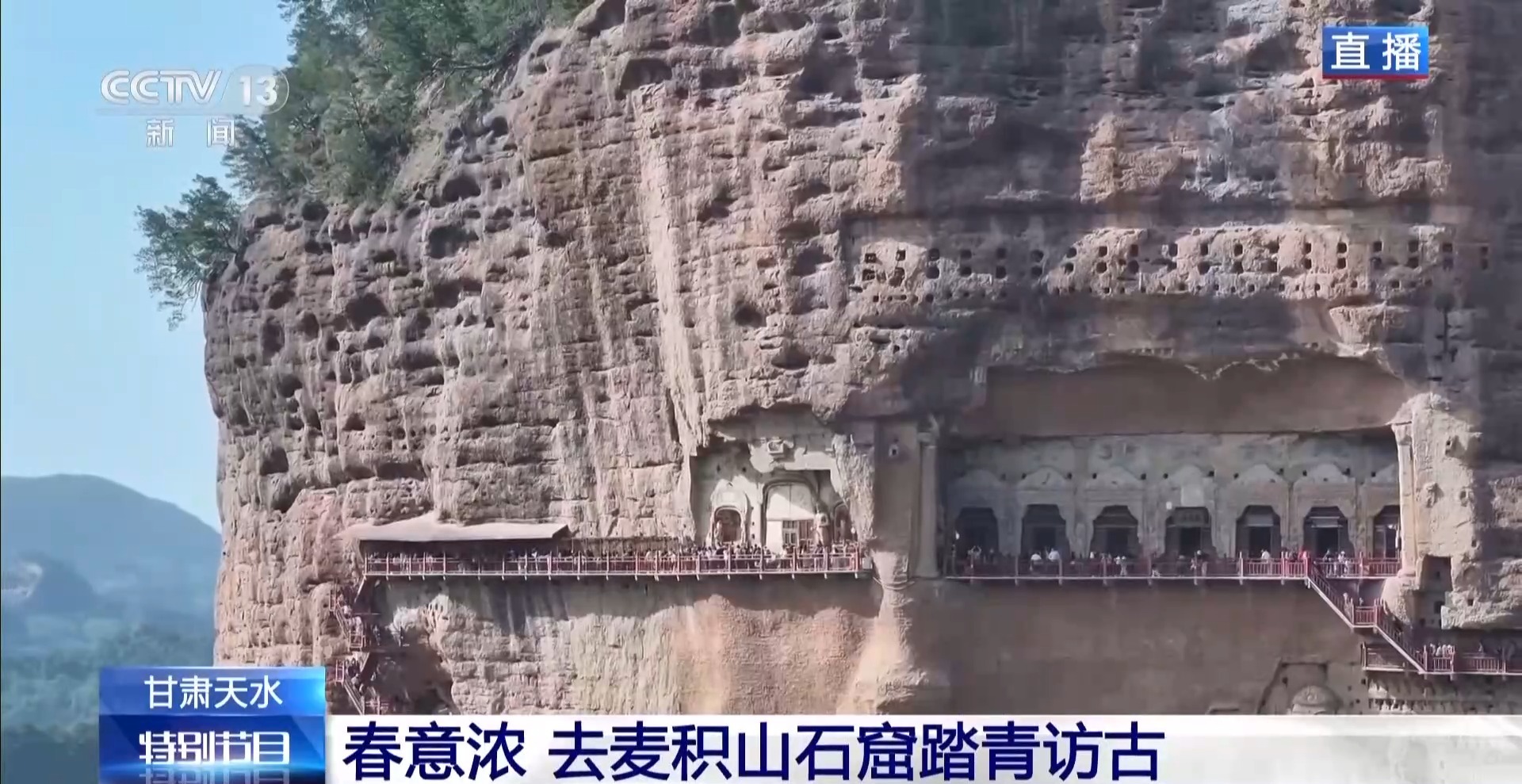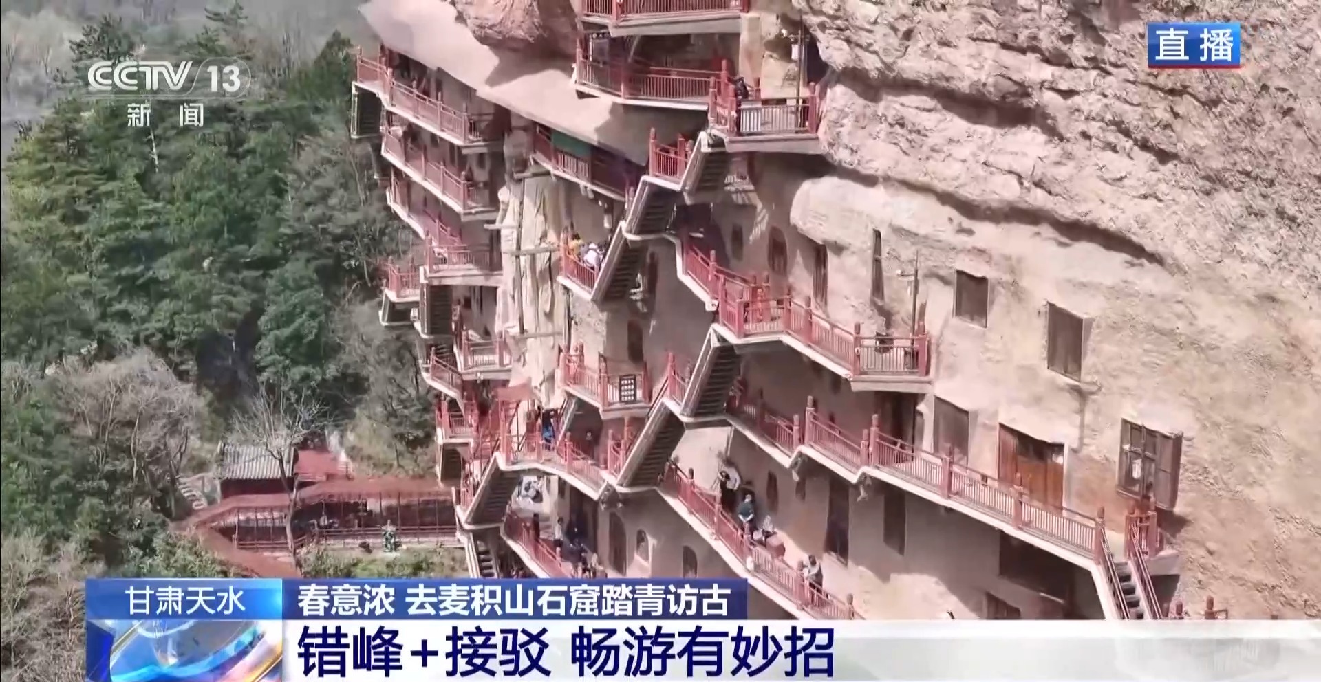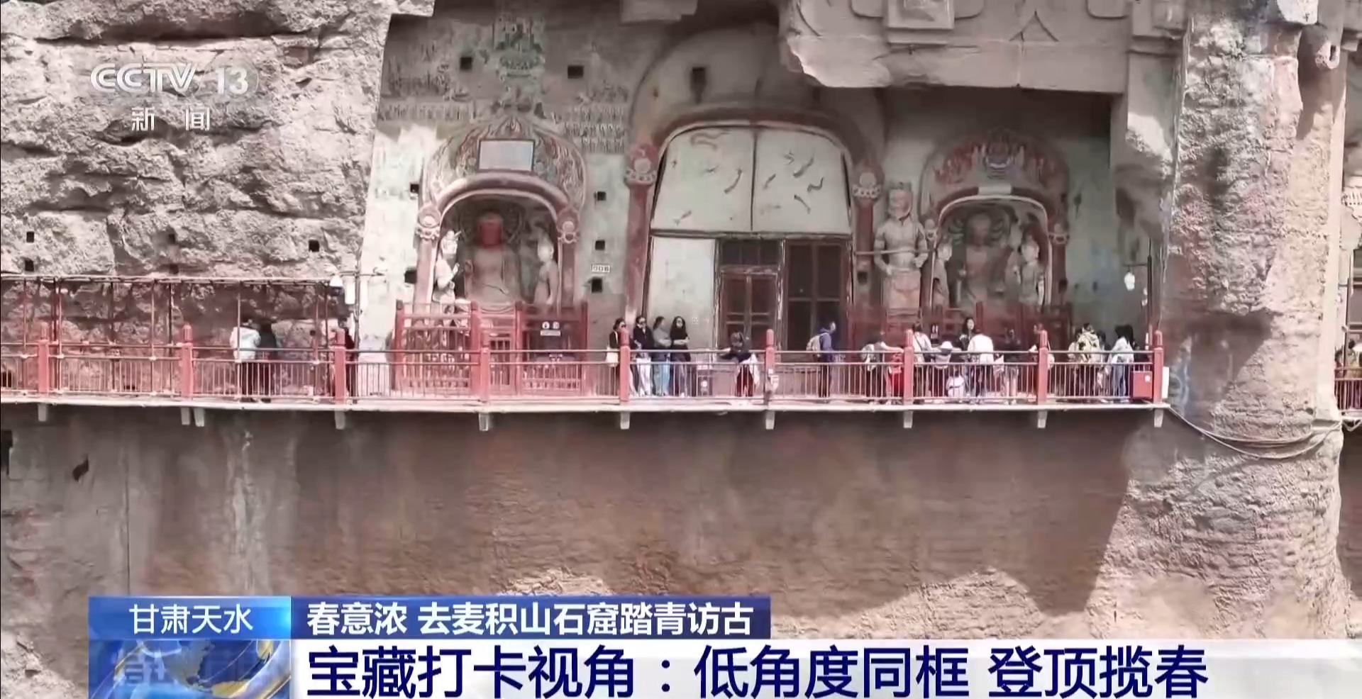 这个假期,很多人选择走出家门,踏青访古。位于甘肃省天水市麦积区的世界文化遗产麦积山石窟也迎来客流高峰,市民游客来到这里,赏春景,看石窟,感受千年文化的魅力。