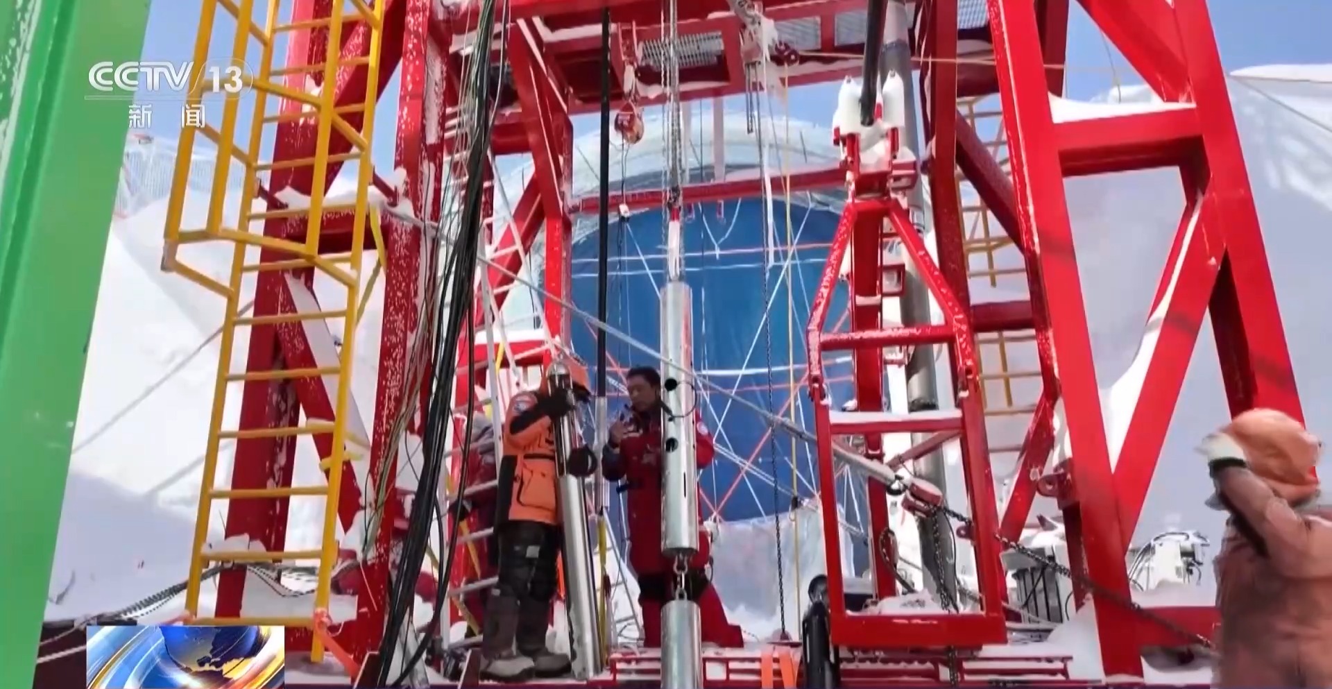 中国第42次南极考察队冰下湖队队员 张楠:每隔几百米或者1千米钻进深度,就要上提钻具来对这个钻孔进行扩孔,保证钻孔的直径可以有效地下放取样器,以及保护我们的钻不会被卡在孔里。