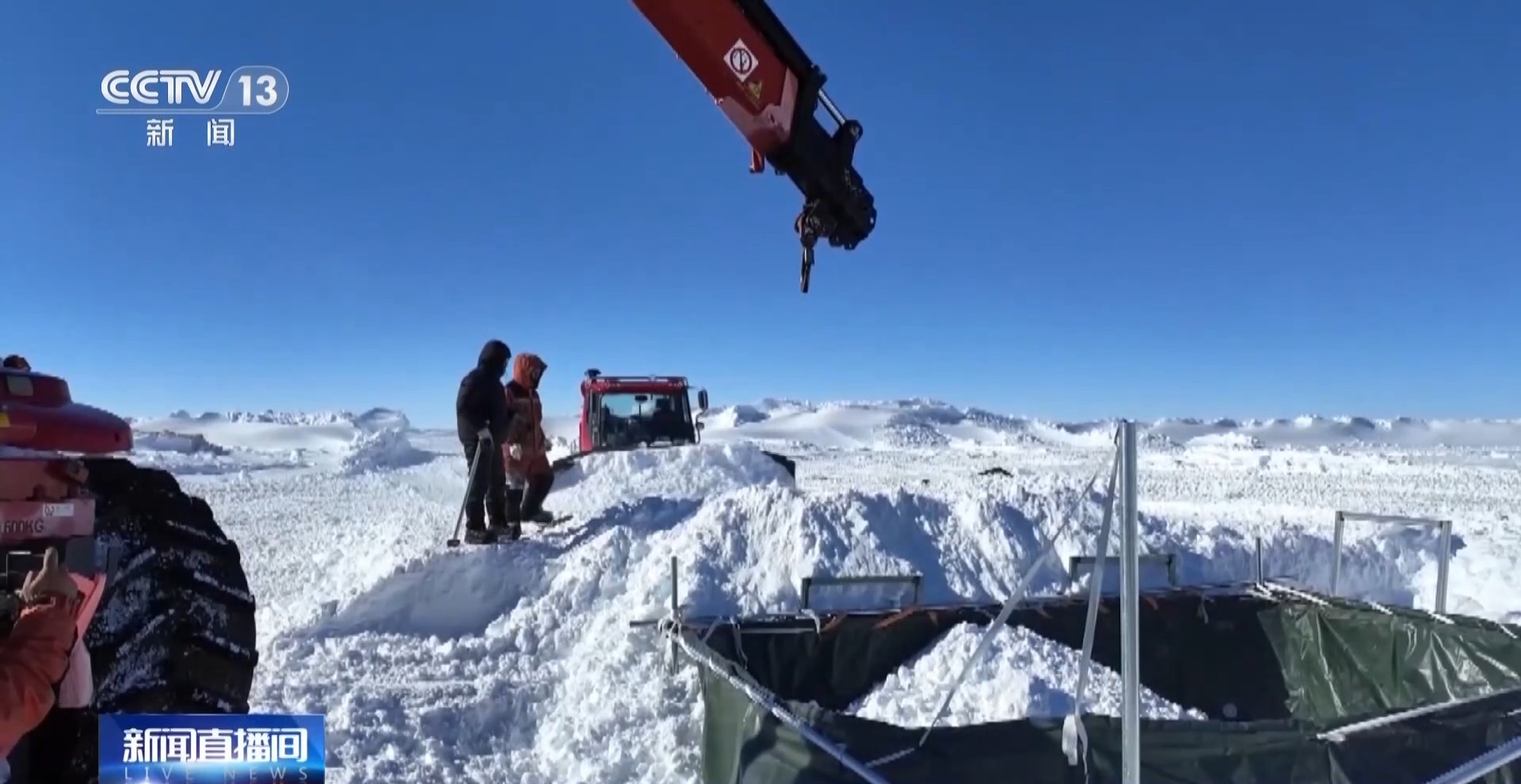 中国第42次南极考察队冰下湖队队员 张楠:刚开始钻进的时候,我们需要在地表取雪,用电加热的方式先把它化成一部分水。这部分水首先要满足保证钻进用的软管里边要填满水,才能够把水输送下去,大概5个立方米。