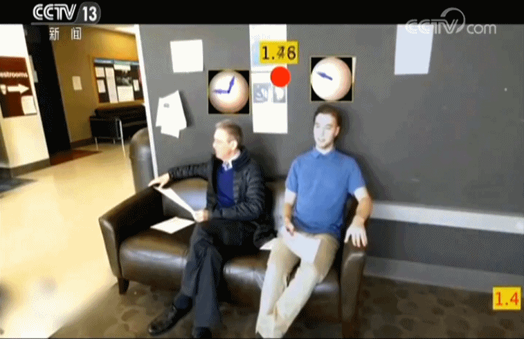 再来看这段视频,看上去这两人是坐在一起的,但通过测定他们脸上的光照角度,可以判定这是一个合成的视频。