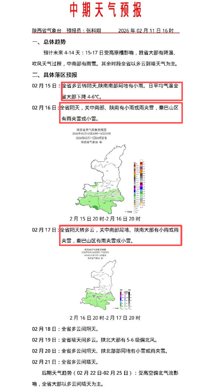 除夕、初一有小雨或雨夹雪、小雪!陕西新一轮雨雪降温时间、范围确定