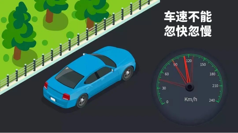 很多新手司机上路时比较紧张,开车车速不稳,忽快忽慢,踩油门和刹车时总是很急促、很用力。学会放平心态,稳稳开车,踩刹车和油门时要有一个缓冲,不要一次到位,车速就基本可以控制住。