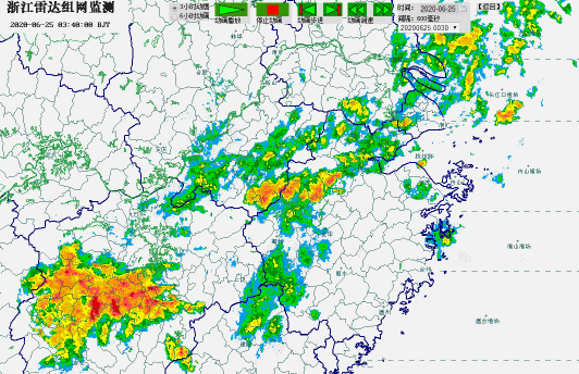 杭州市气象台2020年6月25日6时19分将暴雨黄色预警信号升级为暴雨橙色预警信号预警。