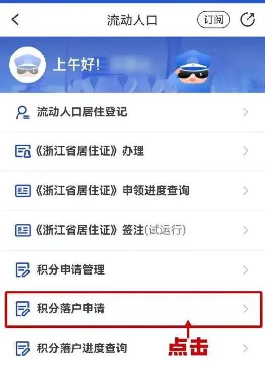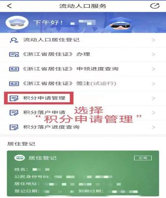 (2)线上:通过“警察叔叔”APP-“流动人口”-“积分落户申请”进行申请。具体操作如下: