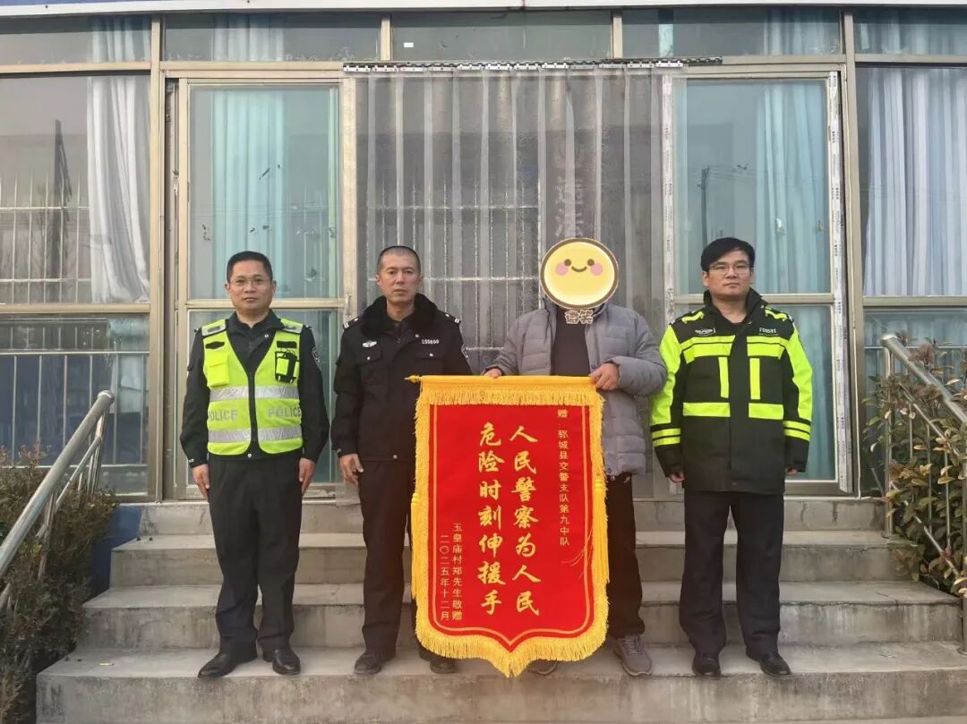 12月16日,伤者家属专程来到郓城县公安局交通管理大队玉皇庙中队,将一面锦旗送到交警手中,对交警及时护航就医的行为表示感谢。