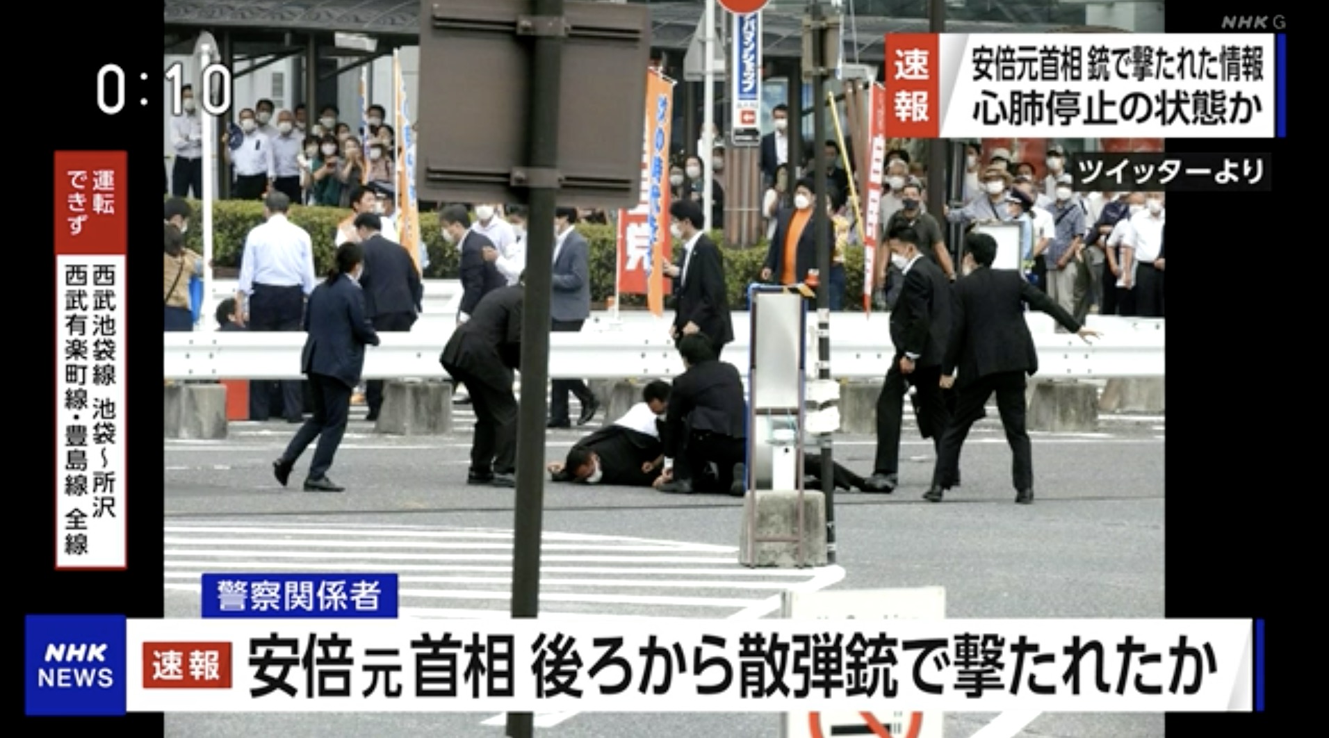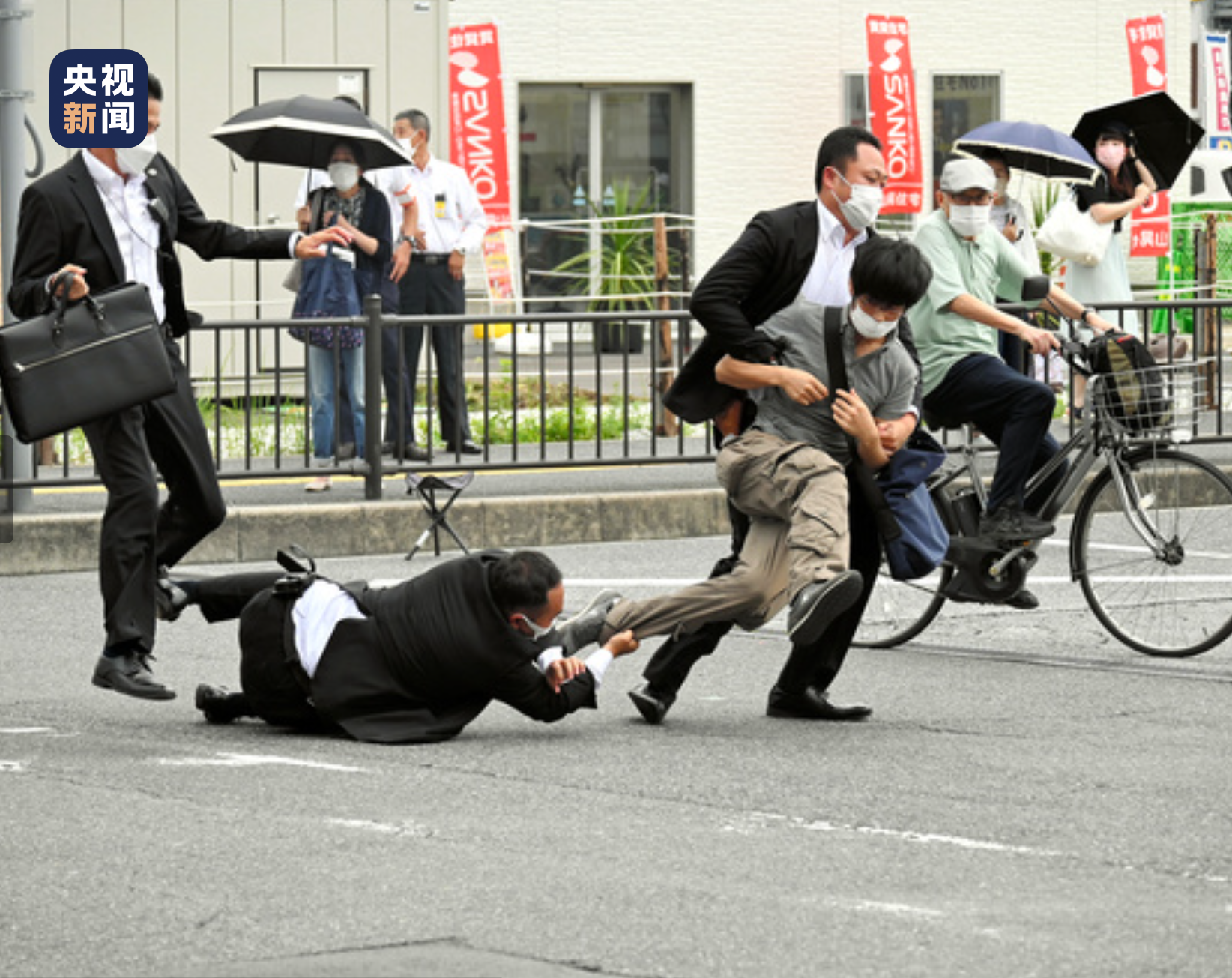 据早前报道,日本前首相安倍晋三当天在奈良市进行演讲时胸部中枪,嫌疑人已被控制。(总台记者 何欣蕾)