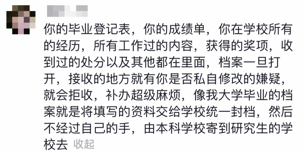不少网友表示,个人档 案非常重要,即便本人都无权拆封自己的档案。