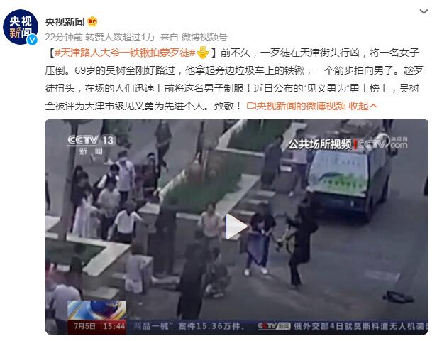 见义勇为!天津路人大爷一铁锹拍蒙歹徒