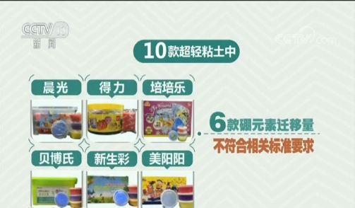 其中,10款超轻黏土中有6款硼元素迁移量被检出不符合相关标准要求;这六款样品分别是:标称晨光、得力、培培乐、贝博氏、新生彩和美阳阳牌超轻黏土。