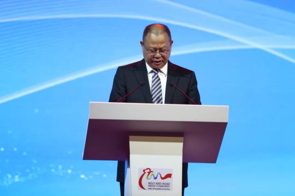 △中宣部副部长、中央广播电视总台台长慎海雄,作为丝绸之路电视国际合作共同体理事会理事长致辞