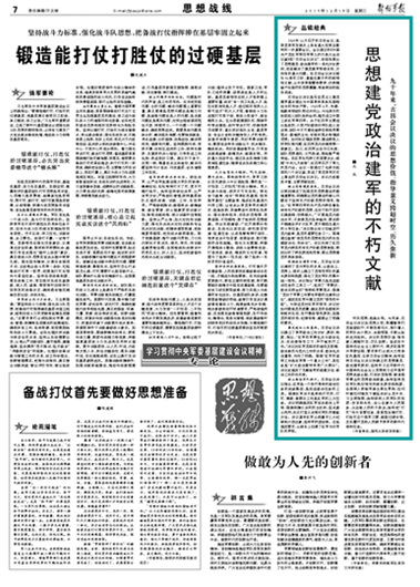 时光荏苒,经典永恒。90年来,古田会议决议如思想火炬,照耀着我们党砥砺前行、不断发展壮大,指引着人民军队由小到大、由弱到强、不断从胜利走向胜利。决议的思想价值、指导意义跨越时空、历久弥新。奋进在中国特色社会主义新时代,阔步在强军兴军新征程,要求我们必须大力传承红色基因,弘扬古田会议精神,始终坚持古田会议决议所确立的思想建党、政治建军原则,坚持用习近平新时代中国特色社会主义思想和习近平强军思想武装头脑,打牢听党指挥、献身强军事业的思想政治根基;始终坚持党对军队绝对领导的根本原则和制度,全面深入贯彻军委主席负责制,任何时候任何情况下都坚决听从党中央、习主席指挥;始终保持人民军队的性质、宗旨和本色,全心全意为人民服务,永远做人民的子弟兵;始终把“打仗”作为首要任务,紧紧扭住能打仗、打胜仗这个强军之要,练就过硬本领,忠实履行党和人民赋予我军的新时代使命任务。