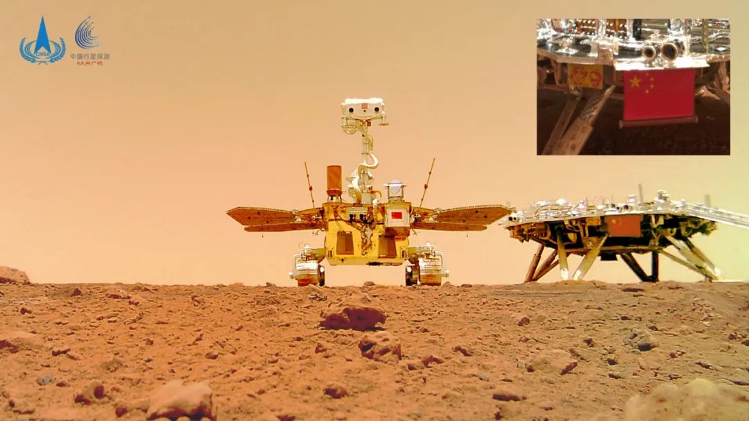 今天,天问一号探测器、五星红旗与北京冬奥会和冬残奥会会徽又一次同框自拍。