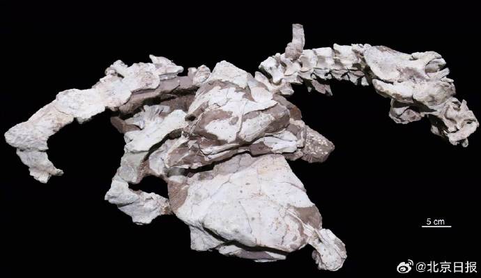 这是两只叠压在一起的甲龙标本。邢立达介绍,除了标志性的颅部突起、覆盖在下颌和喉部的多边形骨片等甲龙亚科特点,新标本还有着特殊的脸型——其脸颊两侧有一对小型的轭骨和方轭骨角,并向外伸展。经鉴定确认,2件标本均是亚成年个体,体长约3.5米至4米。研究团队将其命名为英良达泰龙,取“通达、安泰”之意。(@北京日报 记者 刘苏雅)