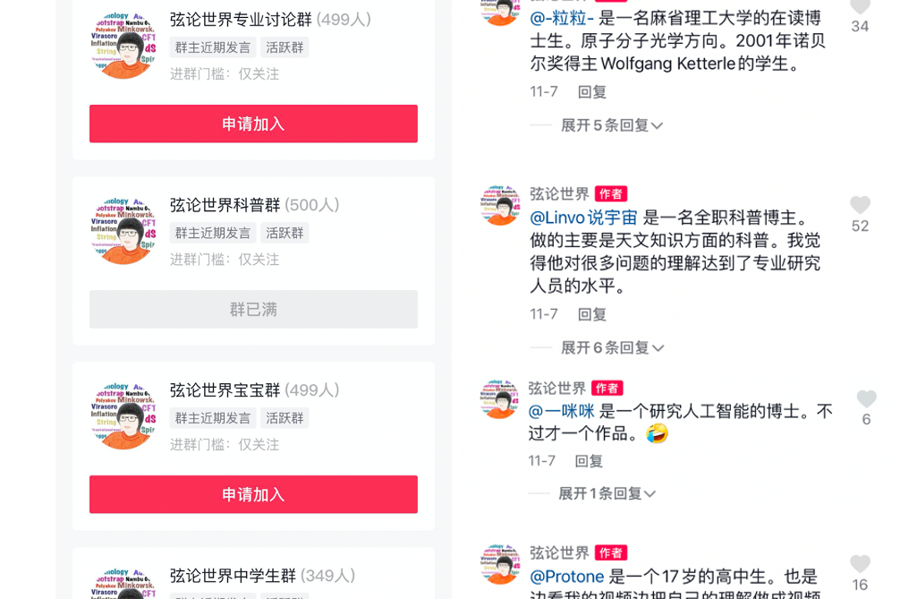 “弦论世界”的抖音粉丝群