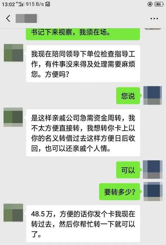 骗子抓住事主对领导敬畏、不敢质疑的心理,频繁使用“尽快”“马上”“立即” 等催促性词语,营造紧张氛围,又利用时间差降低事主核实转账需求真假的可能性。