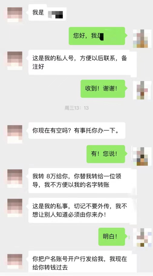 几天后,该“领导”突然在微信上找到林某,称其因身份原因做事不方便,让林某帮忙转一笔钱给另外一位“大领导”, 说明事由后该“领导”还不忘表示对林某的信任。林某听到“领导”让自己办事,便立马答应,并听从其指示将自己的积蓄汇到指定账户中。转账成功后,林某立即向“领导”汇报,但迟迟未收到回复才顿悟可能遇到诈骗,立马报警求助。