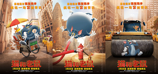 这次的《猫和老鼠》大电影,将是汤姆和杰瑞首次在电影院与中国观众见面,令广大粉丝及网友都兴奋不已。前不久电影官宣确认引进就引爆热议,大家纷纷表示“爷童回”、“必须看”、“我的快乐源泉回来了”、“终于能在电影院看到最爱的动画片了”……期待值爆棚!此次电影更重磅推出“定档海报三连”,三款海报欢乐展现了观众最为熟悉的汤姆“变形记”——汤姆被车轮碾成纸片、被消防栓喷成水球、身体拧成麻花……一切都像极了记忆中的模样,每一个画面都足以唤醒童年最美好的回忆!怪不得有网友评论说,有“猫和老鼠”的地方,就有惊喜与快乐。
