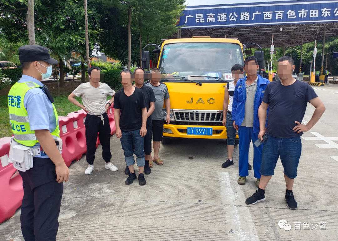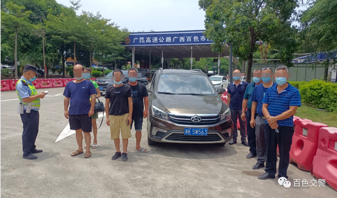 8月10日,百色市公安局交警支队高速公路管理三大队民警在田东服务区对过往车辆检查时,三小时内先后查获4起超员违法行为。