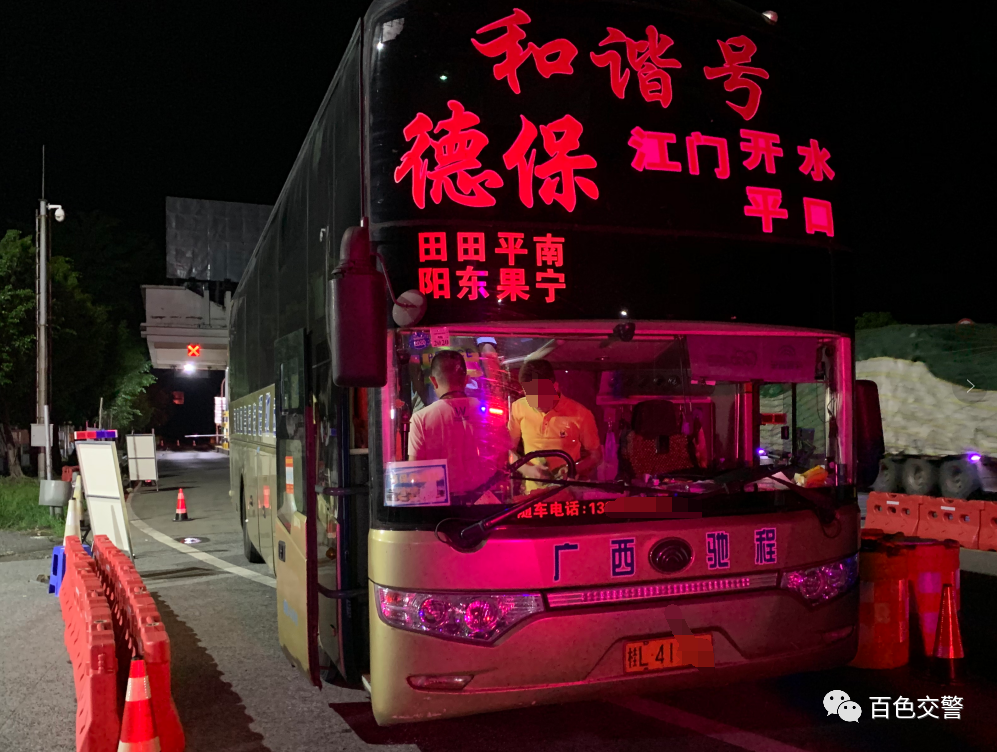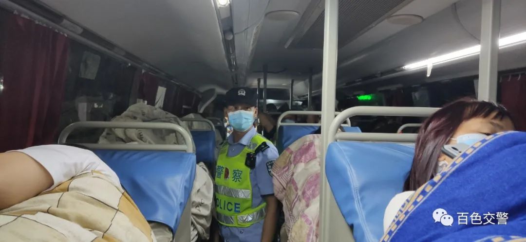 8月16日,百色市公安局交警支队高速公路管理三大队接到警令称:一辆从广东出发前往德保县的长途大客车涉嫌严重超员,请出警拦截。