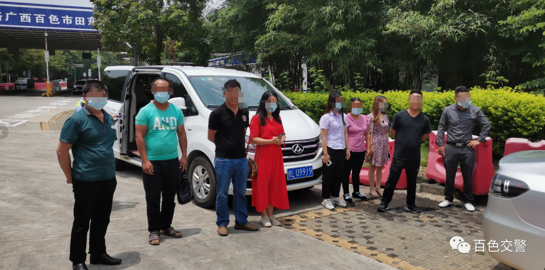8月9日上午,百色市公安局交警支队乐业大队民警在辖区平寨开展整治时,发现一辆面包车车内人头攒动,涉嫌超员。