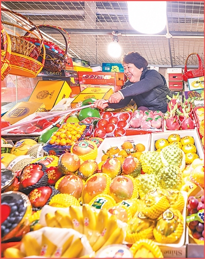 春联灯笼喜气洋洋,蔬菜水果琳琅满目,水产海鲜活蹦乱跳……供应丰足、物价平稳,为新春佳节添上最踏实的幸福底色。