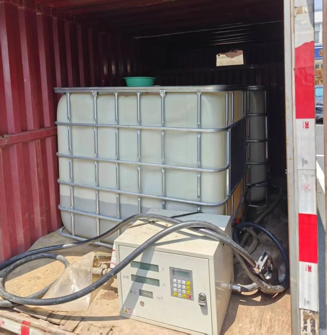 当日,执法人员走进货车,刚打开车厢,一股浓烈的汽油味扑鼻而来。车内放置着1套简易加油设备和2个吨桶,其中1个桶内尚存约200升汽油。吨桶仅靠自制铁架简单固定,加油设备的电瓶则放置在驾驶室内,加油时通过电线临时连接,现场环境极其简陋。