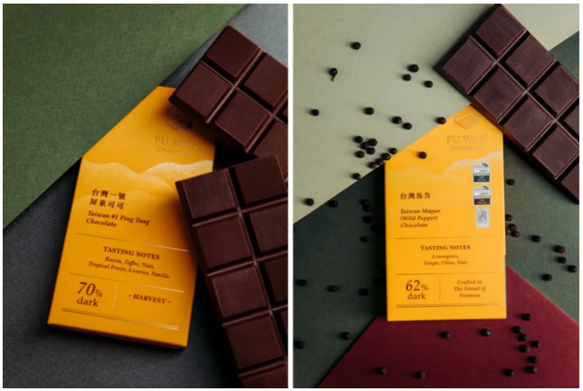 此番获得世界最佳黑巧克力金奖的福湾巧克力(70%),带有坚果、焦糖、朗姆酒、甘草的香气,还有些许热带水果的酸度,独特的味觉体验是屏东当地可可的风土之味。此外,福湾巧克力还结合了台湾食材,创造出樱花虾、红藜、乌鱼子、台湾茶等风味,让产地风味更具特色。