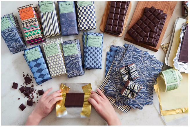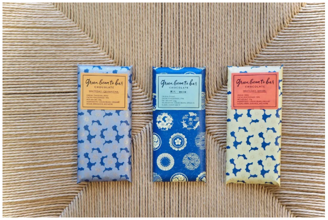 日本饮食风潮的特点在于,一切的“舶来品”都会印刻上本土的风味和气质。green bean to bar Chocolate也不例外。在南美丛林中寻回的可可豆,经过焙烧、压碎、研磨、精炼、陈化、回火、成型后,用具有日本特色的“和纸”进行包装,无论是风味还是视觉,都拥有了浓浓的日系和风。