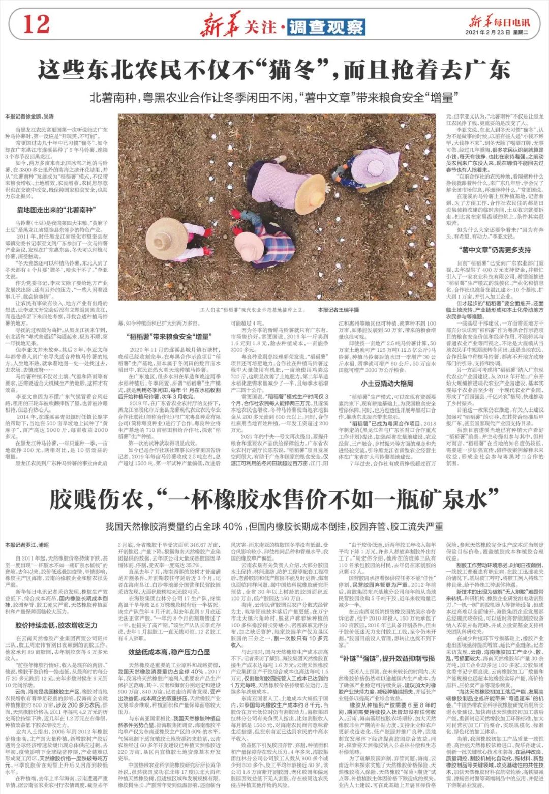 当前,我国橡胶初加工产品质量一致性差、高性能天然橡胶依赖进口。黄华孙建议,创新一批关键核心技术和装备,在品种改良、质量调控、割胶机械化自动化、新材料、新型橡胶制品等关键领域,攻克基础性的共性技术,加快天然橡胶材料在航空轮胎、高铁隔减震、潜艇密封圈等高端制品中的应用,并促进下游制品业发展。