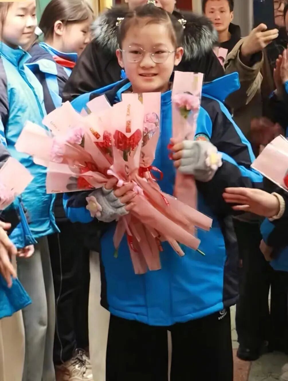 六年了,她第一次靠自己走进教室,立刻迎来鲜花和掌声!