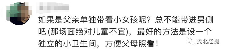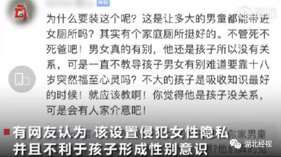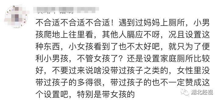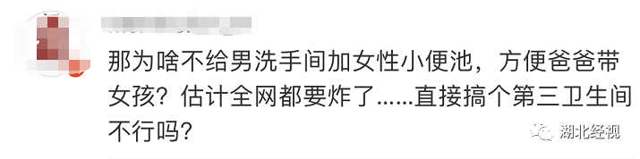“那男厕所有女童单间吗?带女儿出门的爸爸怎么办?”一位网友评论说。“很多是妈妈带小孩出去玩,有的会带着小男孩去女厕上厕所,如果没法避免,设置小便池也算考虑到了,不过还是希望有那种专属带小孩上厕所的地方啦。”不少人表示,商家有那个心思有那个空间,完全可以单独设置一个母婴室或者专供小孩子使用的卫生间,男童女童都方便。